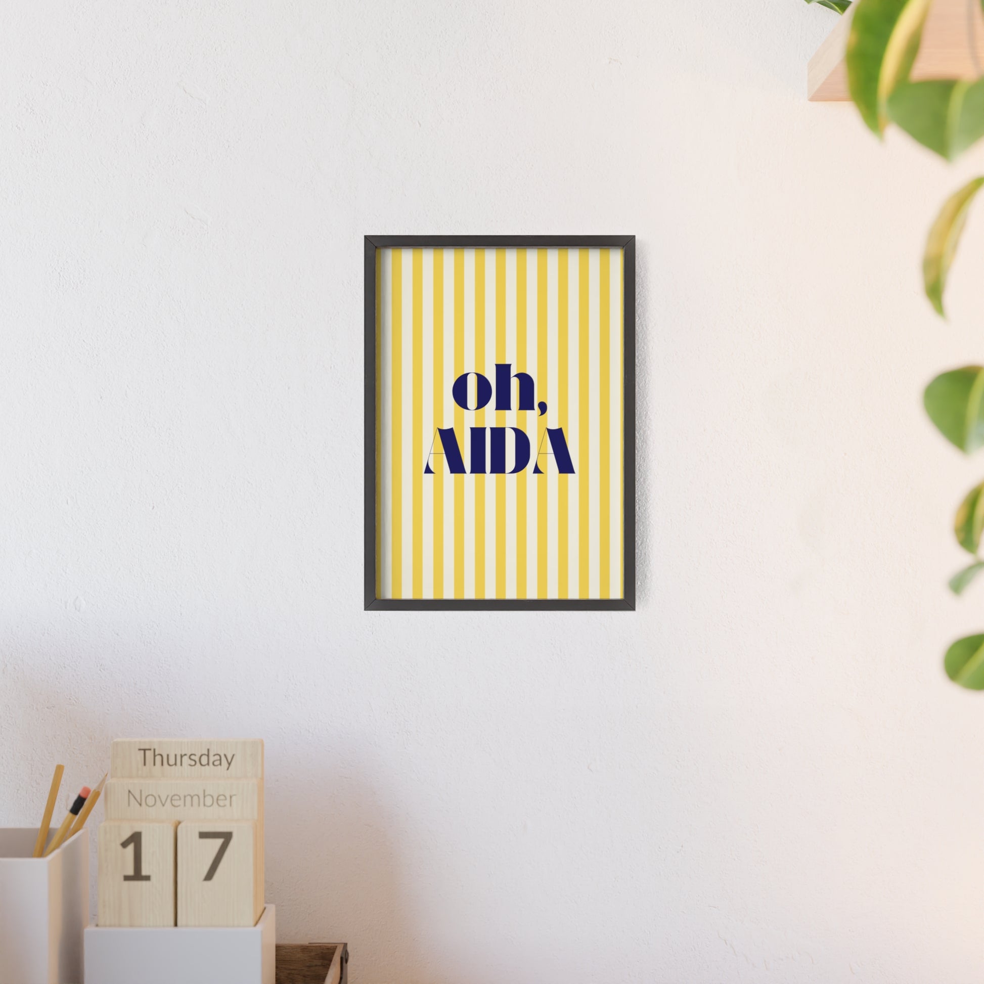 Poster with Wooden Frame - OH AIDA Yellow White Stripes