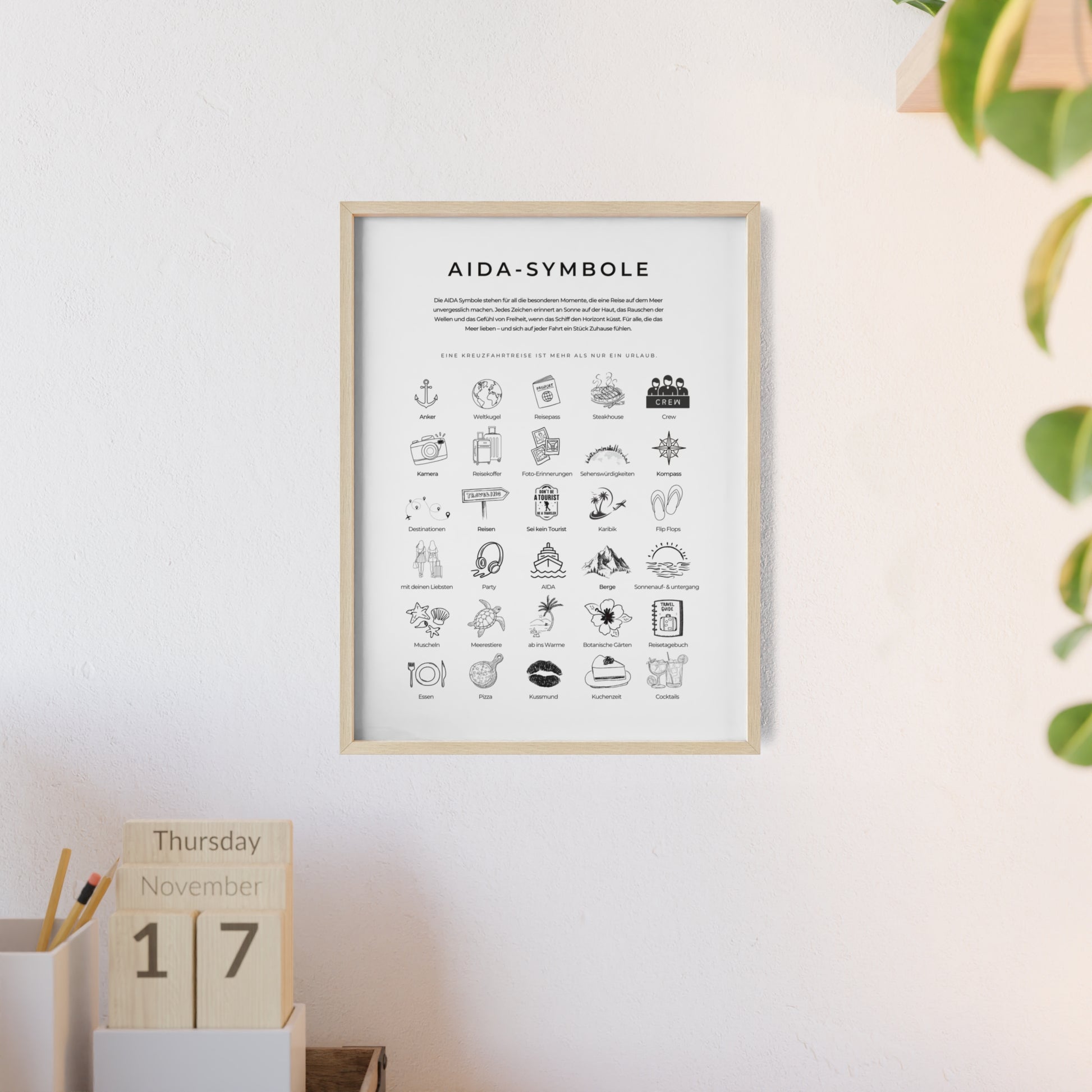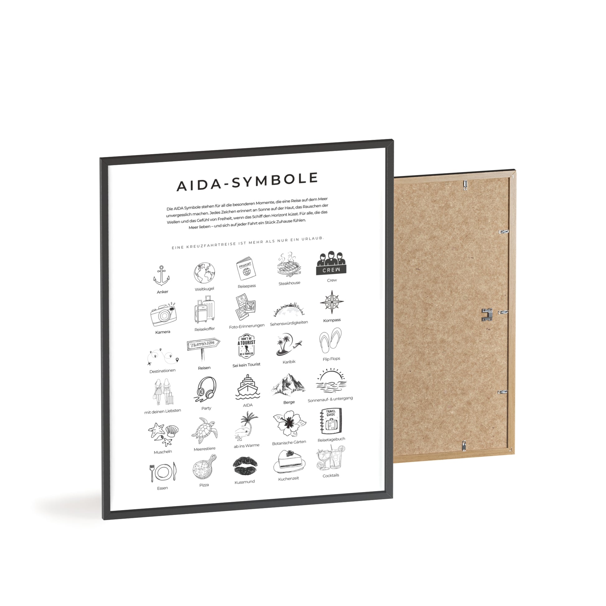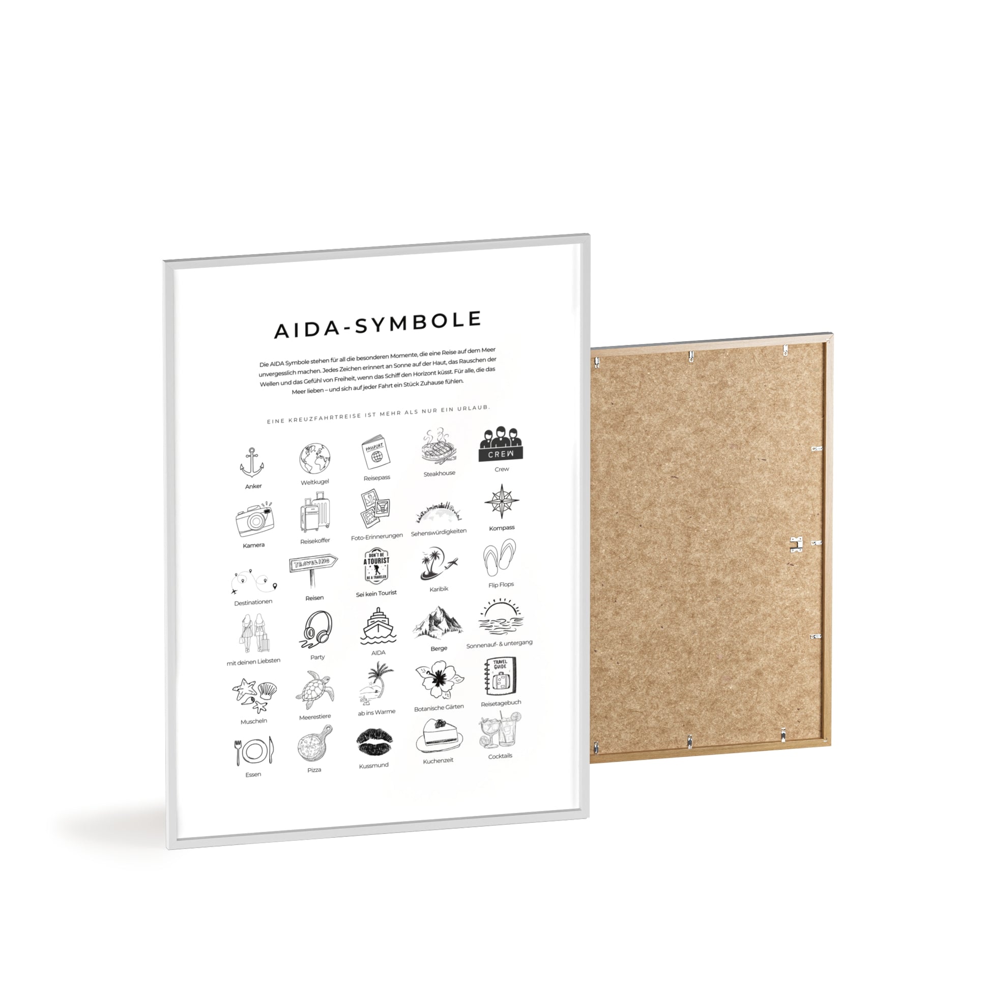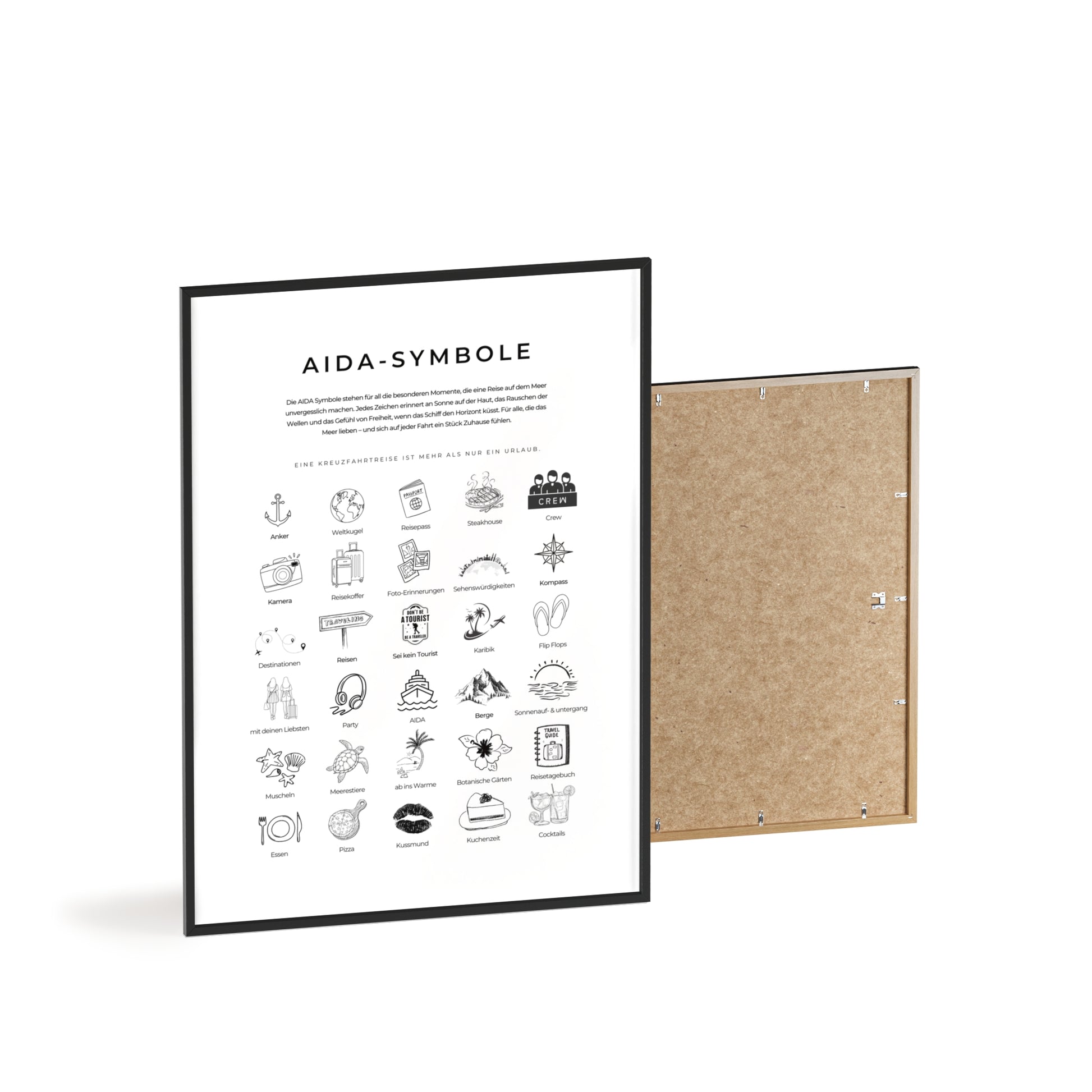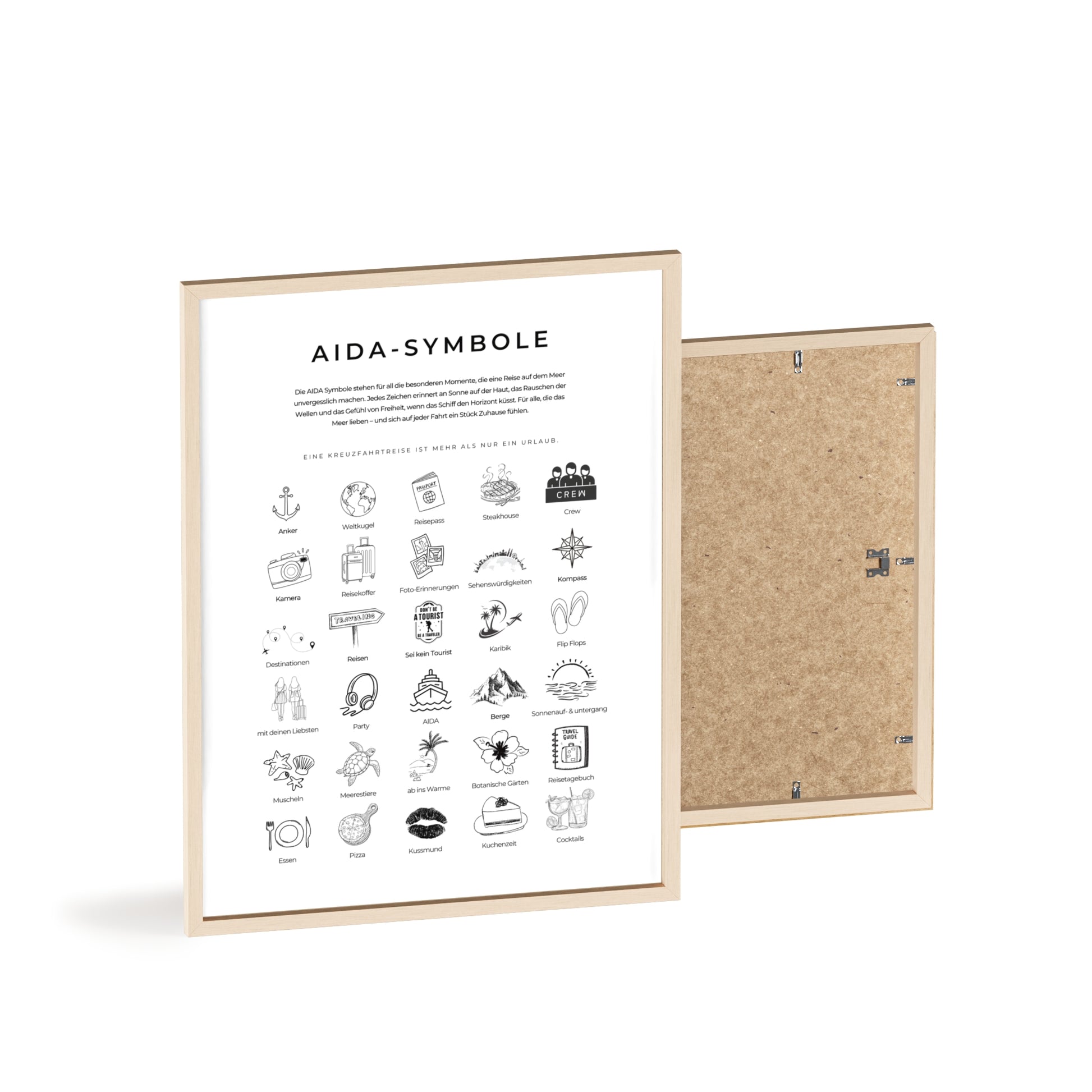 Wandposter mit Holzrahmen - AIDA und Reisesymbole