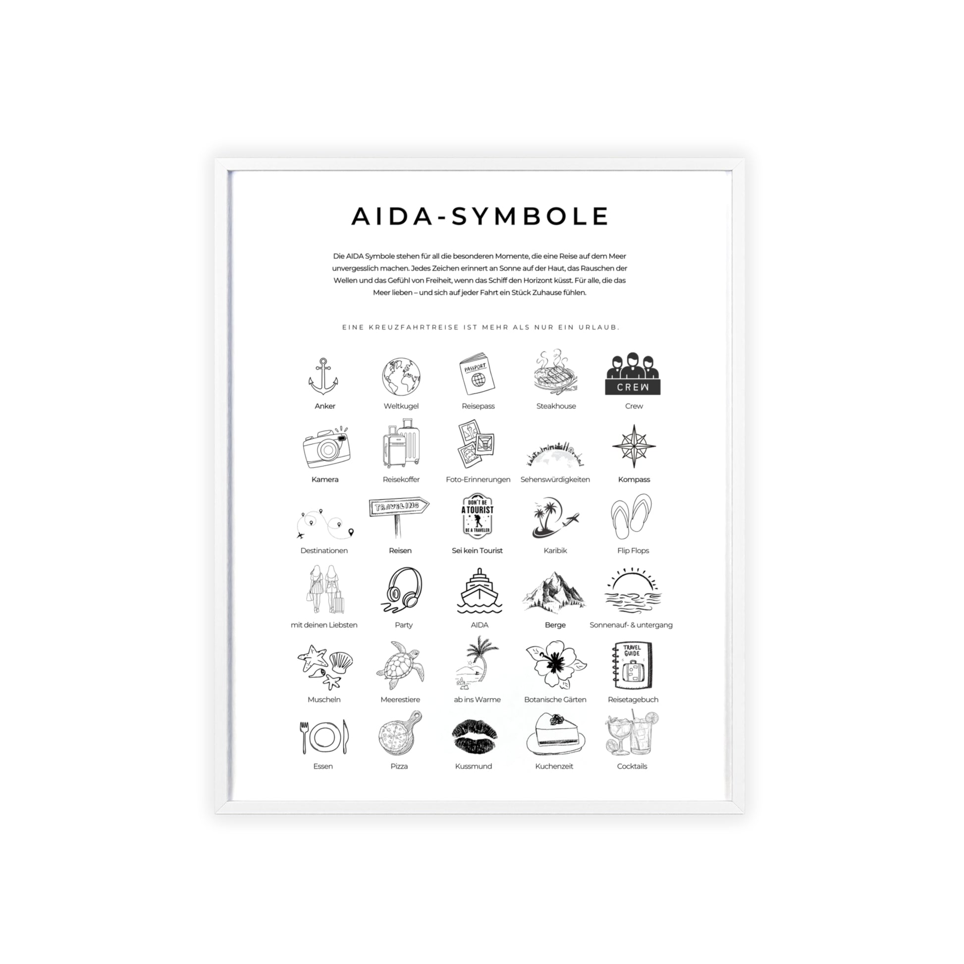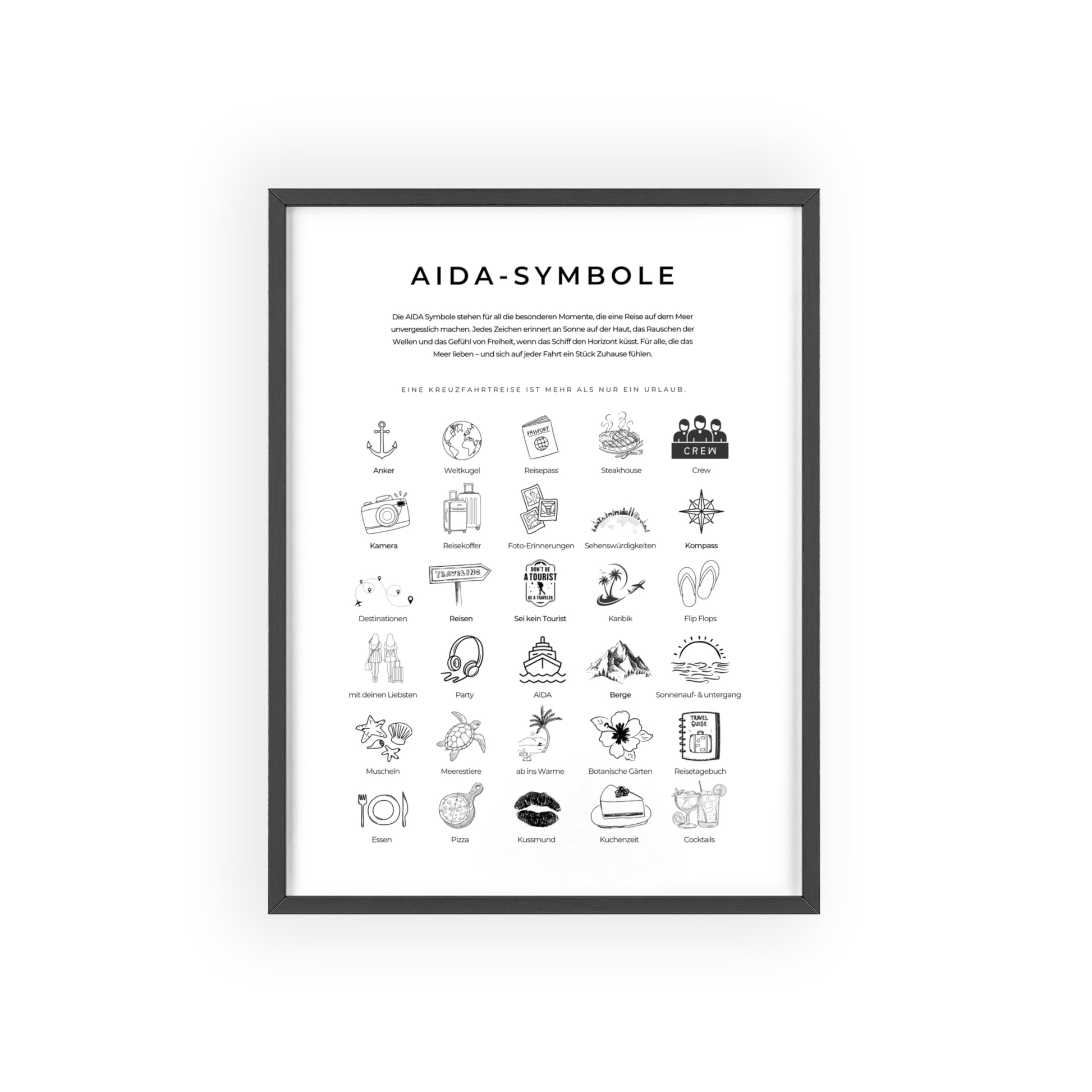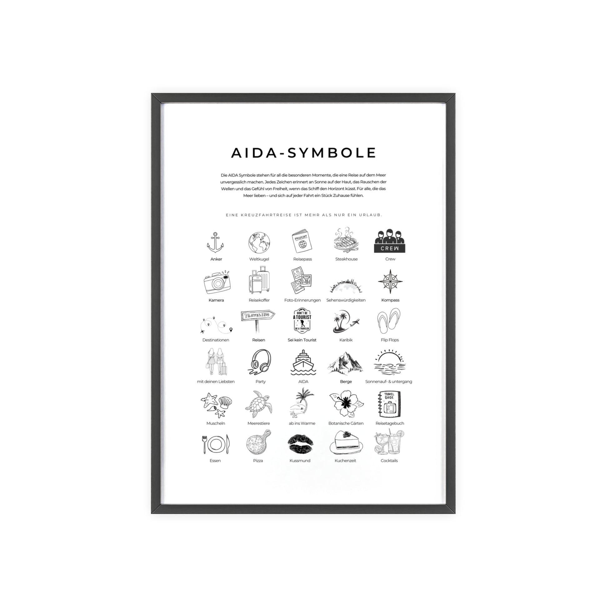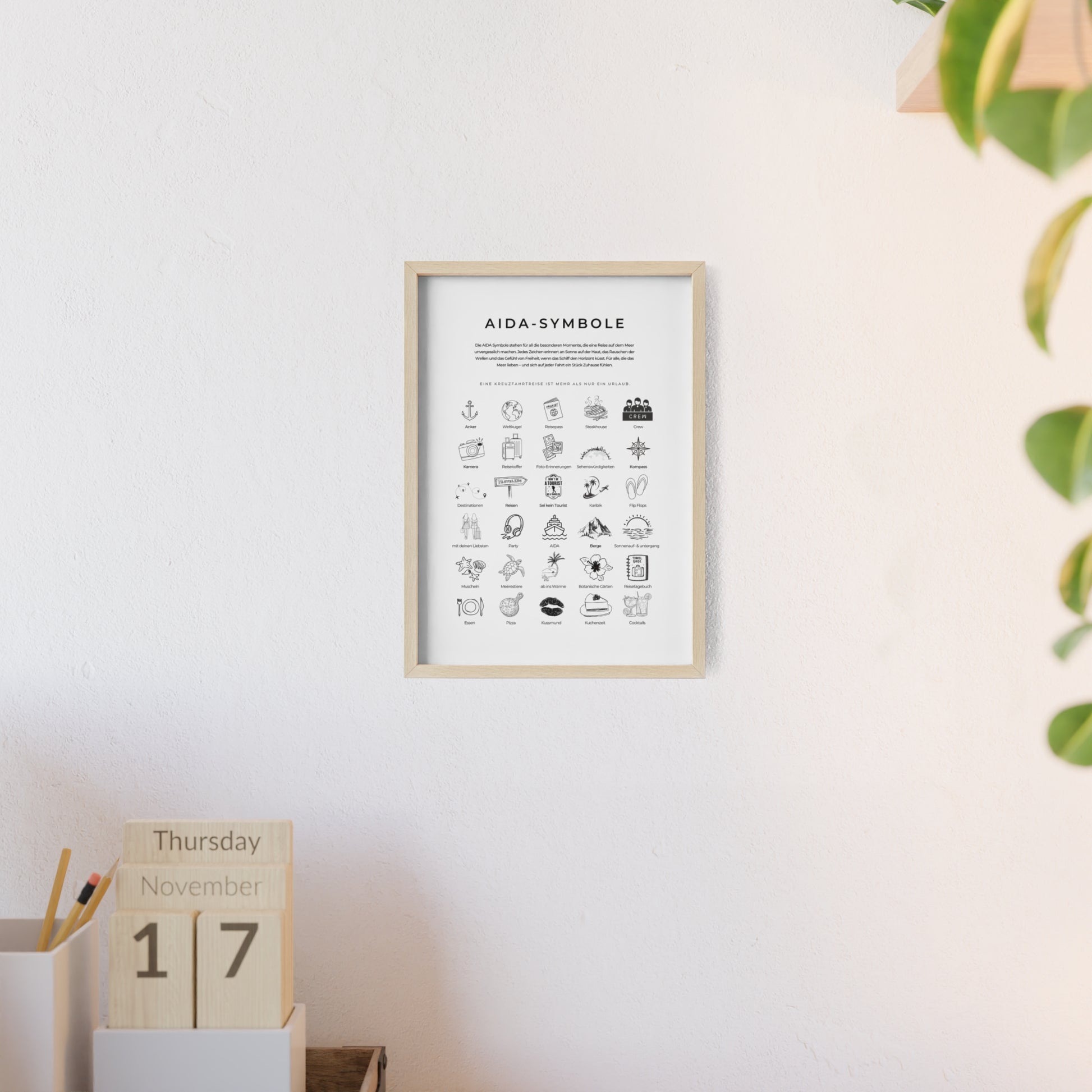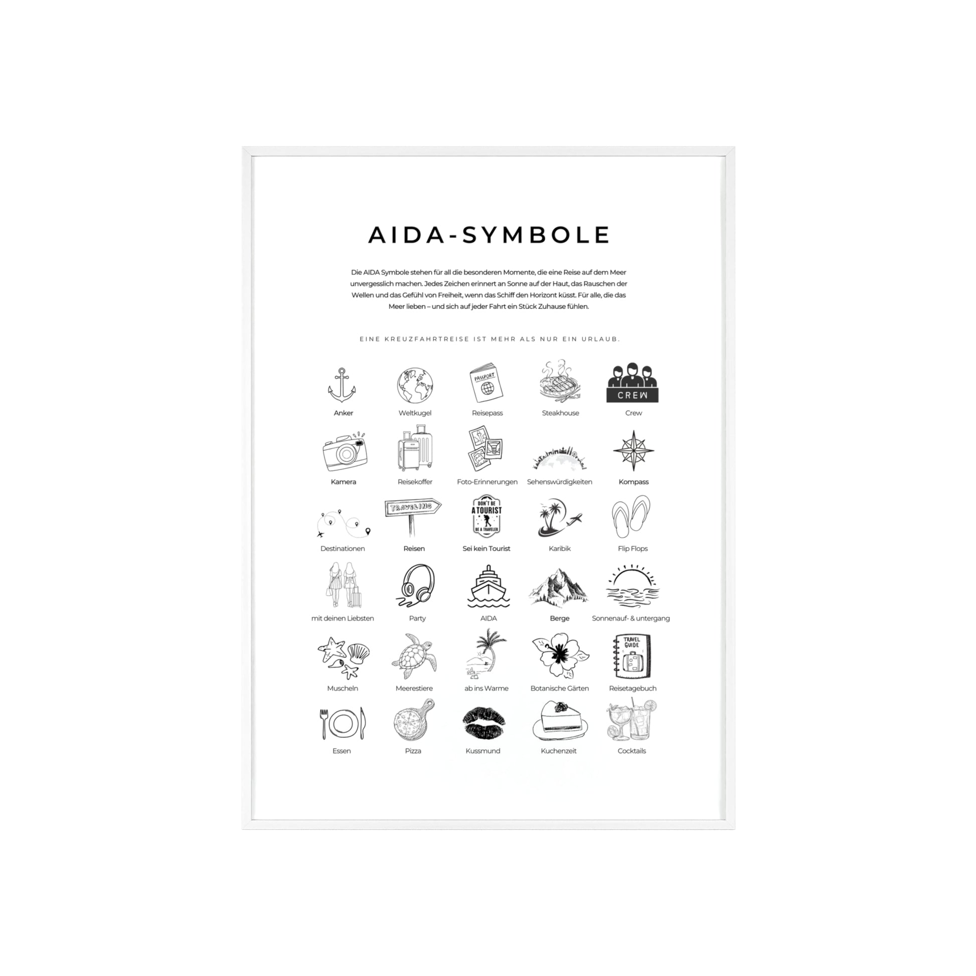 Wandposter mit Holzrahmen - AIDA und Reisesymbole