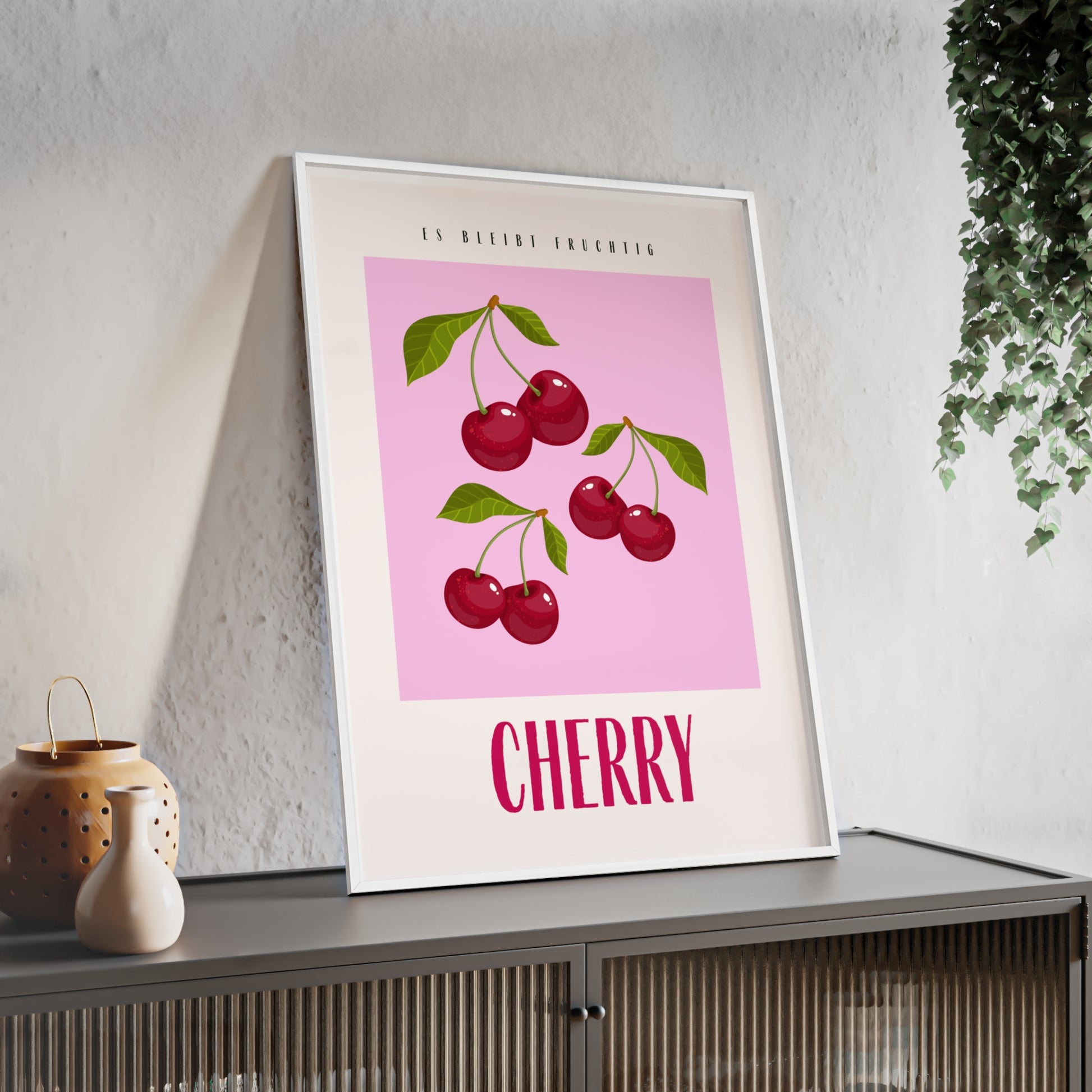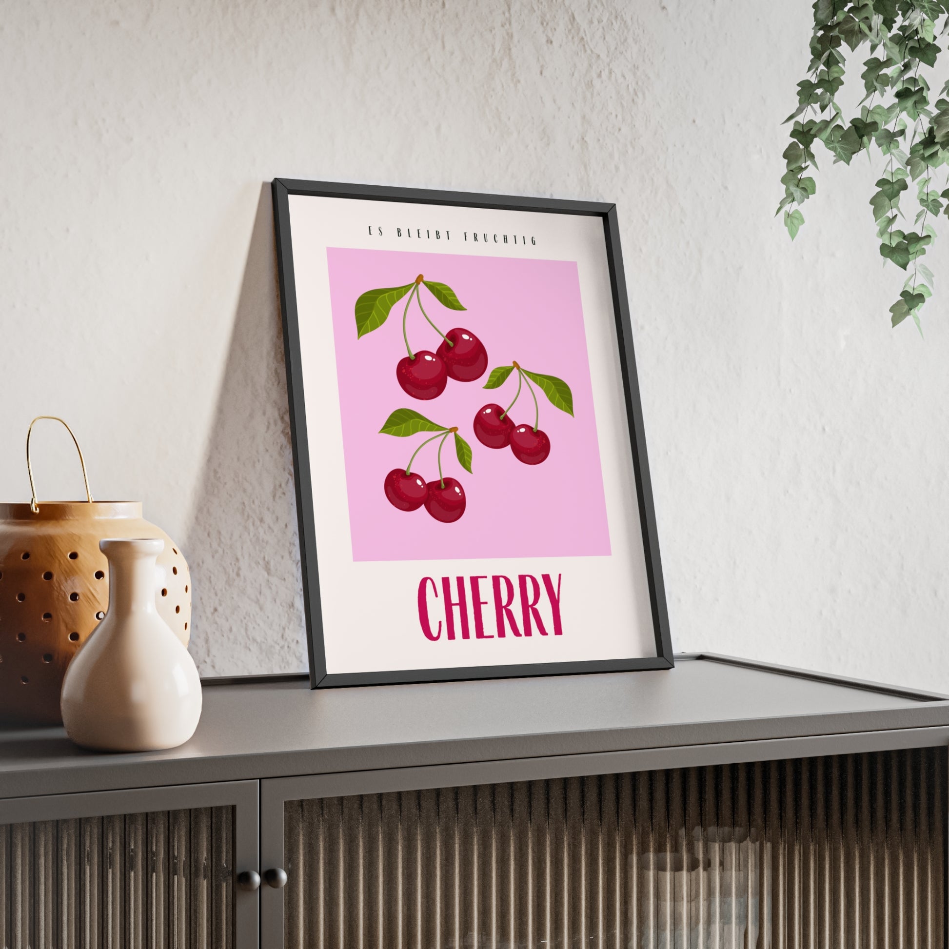 Wandposter mit Holzrahmen - Cherry Pink